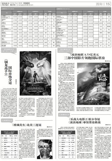 - 《流浪地球》1.73亿美元 三部中国影片领跑国际票房