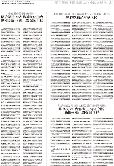 - 保质保量,生产精神文化主食 提速发展,实现电影强国目标
