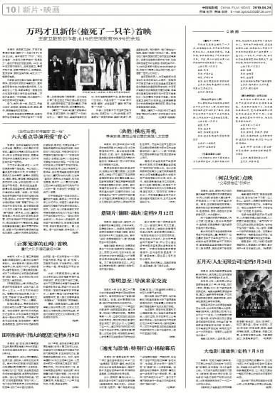 孙向辉(左三)、王家卫、万玛才旦等亮相首映式本报讯 由王家卫监制、万玛才旦导演的电影《撞...