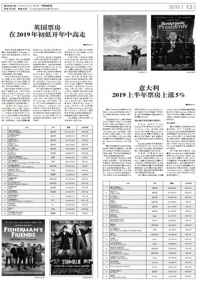意大利2019年上半年票房收入和观影人次与2018年同期相比增加了5%,尽管今年的前三个月同比下降了...