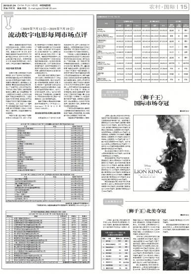 上周末,迪士尼公司发行的《狮子王》在国际市场中新增票房2亿6940万美元,位居周末国际榜单第一名。其...