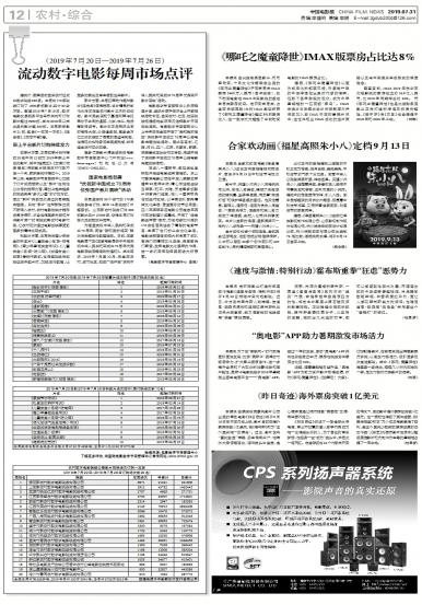 据统计,截至目前全国农村已成立数字院线330条。本周有170条院线订购了1600多部影片,共计30余...