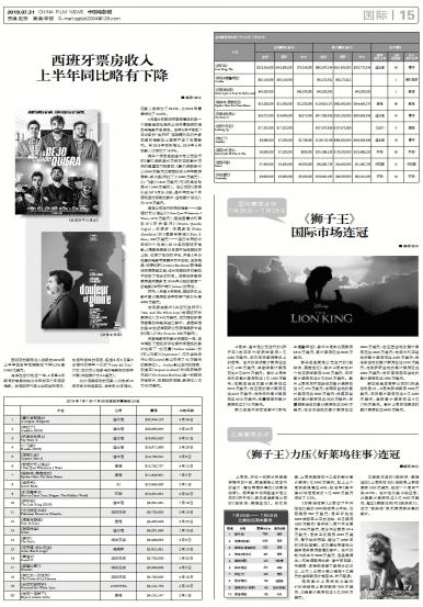 上周末,迪士尼公司发行的《狮子王》在国际市场新增票房1亿4280万美元,成为国际票房榜单上的冠军。该...