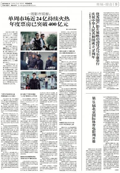 - 单周市场近24亿持续火热 年度票房已突破400亿元
