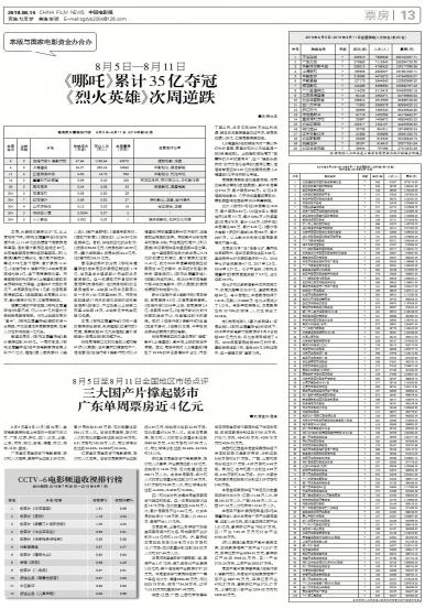 - 三大国产片撑起影市 广东单周票房近4亿元
