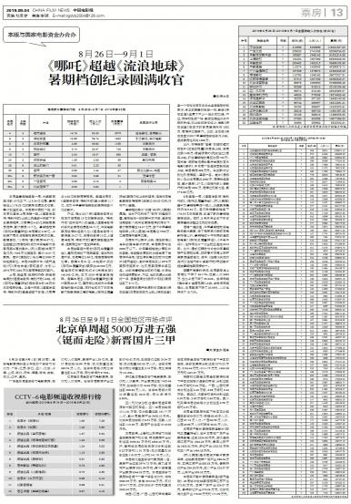 - 《哪吒》超越《流浪地球》 暑期档创纪录圆满收官