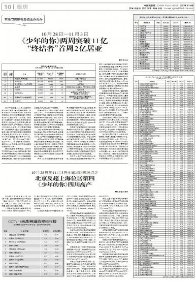 - 《少年的你》两周突破11亿 “终结者”首周2亿居亚