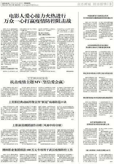 本报讯 日前,为全力支持配合疫情防控工作,切实保障公众身体健康和生命安全,中国电影发行放...