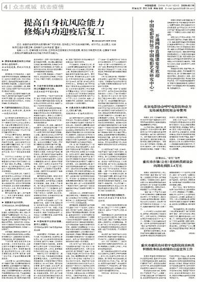 本报讯 日前,北京电影协会发布《关于呼吁全市电影院物业方风雨同舟共抗疫情鼎力支持减免影院...