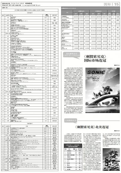上周末,派拉蒙公司发行的《刺猬索尼克》在国际市场中的16个地区首映,其国际上映地区已达56个,新增国...