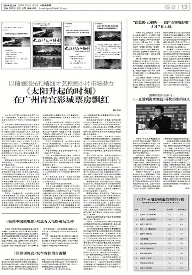 - 《太阳升起的时刻》在广州青宫影城票房飘红