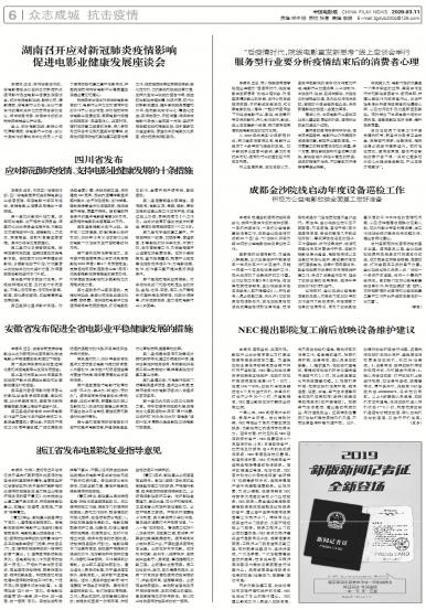 - 四川省发布应对新冠肺炎疫情、支持电影业健康发展的十条措施