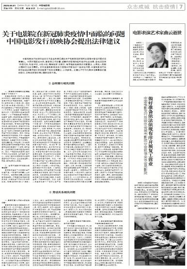 中国电影发行放映协会近日向各会员单位提出关于电影院在新冠肺炎疫情中面临问题的法律建议。为贯彻落实党中...
