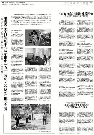 - 电影数字节目管理中心网站推出《“五一”劳动节公益影片推荐专题》