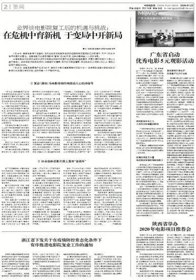 本报讯 根据国家电影局《关于在疫情防控常态化条件下有序推进电影院恢复开放的通知》(国影发〔2020〕...