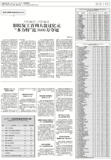 2020年7月20日,全国疫情低风险地区的电影院在严格执行各项防控措施的背景下陆续开放,大盘终于在沉...