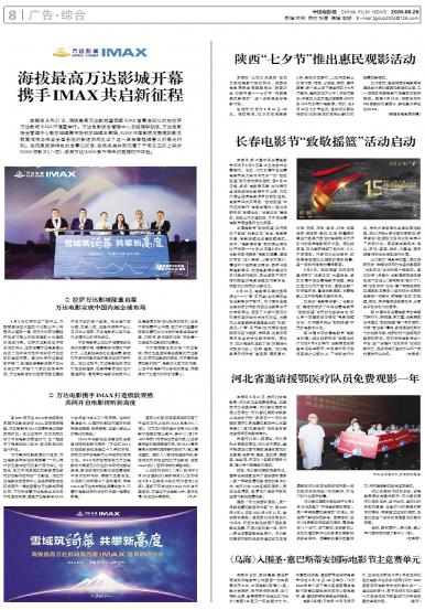 - 海拔最高万达影城开幕 携手IMAX共启新征程