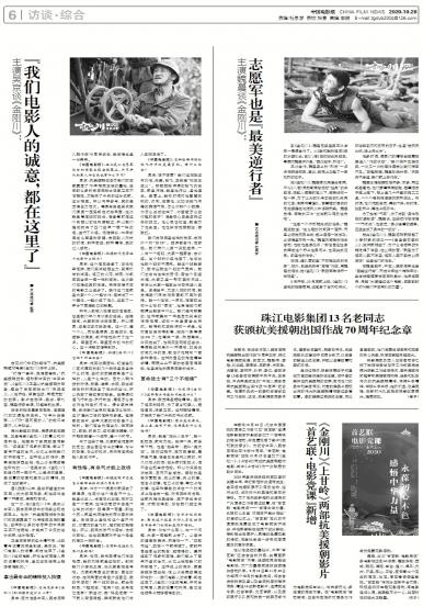 本报讯 在纪念中国人民志愿军抗美援朝出国作战70周年之际,珠江电影集团张良、郭艺文、魏殿...