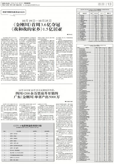 - 四川4200余万票房升至第四 广东《金刚川》单省产出5000万