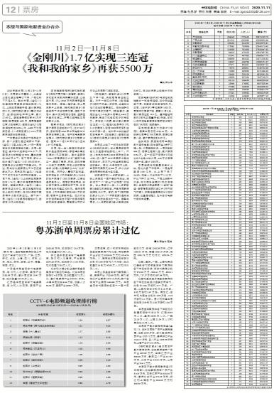 2020年11月2日至11月8日(第45周),全国电影票房排名上半区的十五省市依次为:广东、江苏、浙...