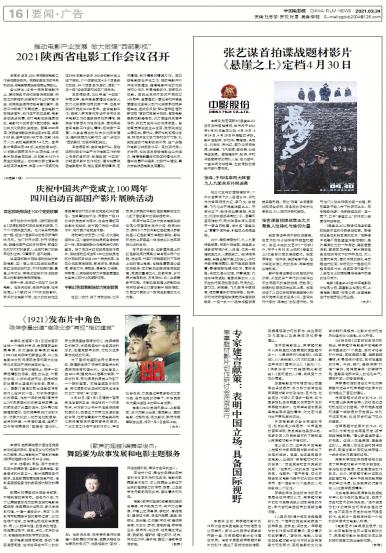 本报讯 张艺谋新片《悬崖之上》近日发布定档海报,宣布将于2021年4月30日全国公映,4月18日、4...