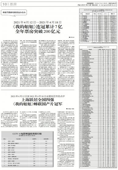 - 上海跃居全国四强 《我的姐姐》蝉联国产片冠军