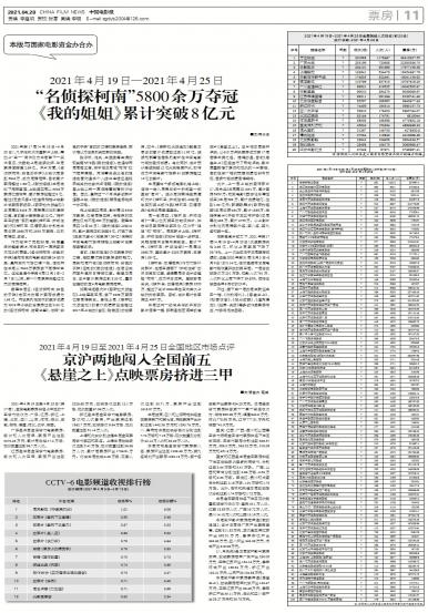 - “名侦探柯南”5800余万夺冠 《我的姐姐》累计突破8亿元