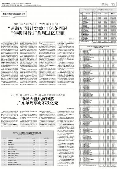 - “速激9”累计突破11亿夺周冠 “伴我同行2”首周过亿居亚