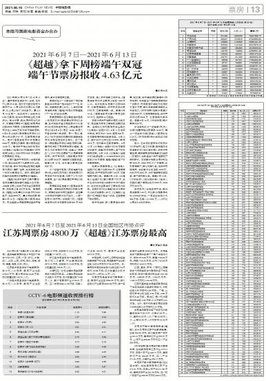 - 《超越》拿下周榜端午双冠 端午节票房报收4.63亿元