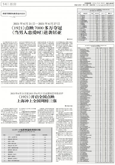 - 《1921》开启全国点映 上海冲上全国周榜三强