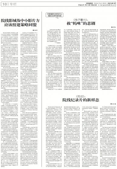 - 院线影城及中小影片方应该组建策略同盟