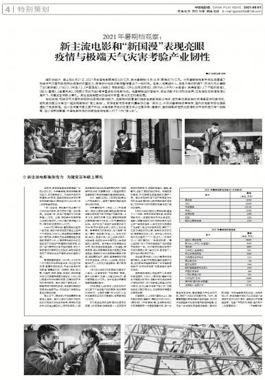 据初步统计, 截止到8月31日,2021年全国电影票房近330亿元,其中暑期档(6月-8月)票房近7...