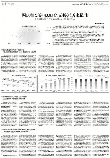 据国家电影专资办初步统计,10月1日至7日的国庆七天假期中,全国电影市场共产出票房43.85亿元,比...