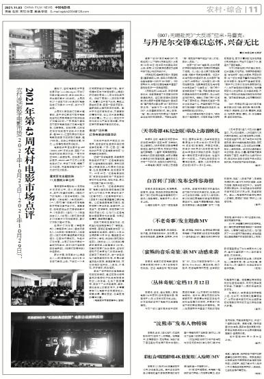 - 2021年第43周农村电影市场点评