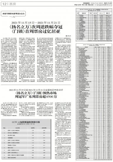 - 《扬名立万》《门锁》预热市场 周冠军广东周票房超8500万