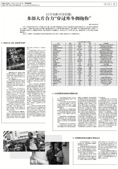 今年12月电影市场的节目十分丰富,总体上看,大制作影片更多集中在下半月,圣诞档和元旦档均有多部大片入...
