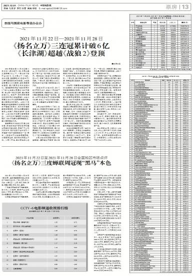 - 《扬名立万》三连冠累计破6亿 《长津湖》超越《战狼2》登顶