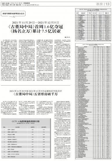 - 《古董局中局》首周1.6亿夺冠 《扬名立万》累计7.5亿居亚