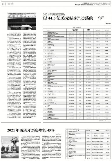 Comscore日前公布了一组数据,其中2021年西班牙票房,部分因为去年年末《蜘蛛侠:英雄无归》在...
