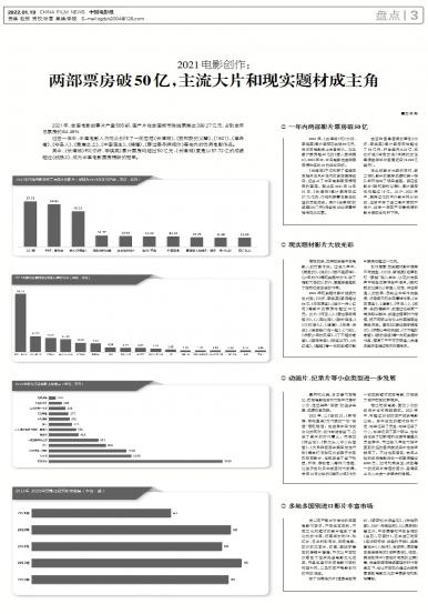 2021年,全国电影故事片产量565部,国产片在全国城市院线票房达399.27亿元,占到全年总票房的...