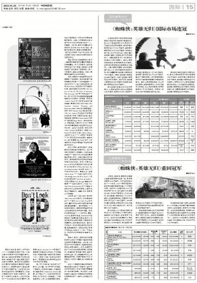 - 《蜘蛛侠:英雄无归》国际市场连冠