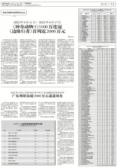 2022年第15周(4月11日至4月17日),因为疫情反扑和新片表现欠佳,大盘未能突破亿元,七天仅报...