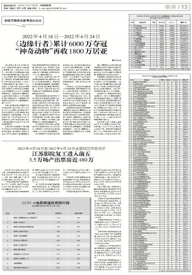 - 《边缘行者》累计6000万夺冠 “神奇动物”再收1800万居亚