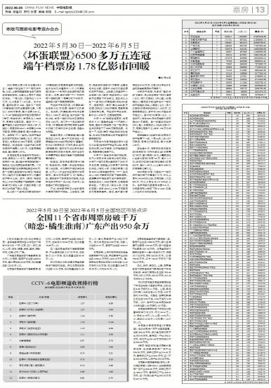 2022年第22周(5月30日至6月5日),电影市场迎来了六一档和端午档,北京、上海两座重要票仓城市...
