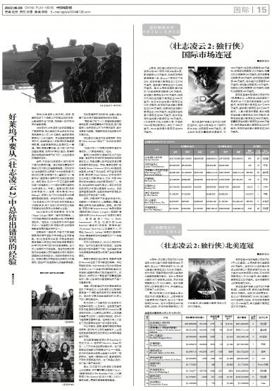 上周末,派拉蒙公司发行的《壮志凌云2》在64个国际市场上映第二周,新增票房8170万美元,排在国际周...