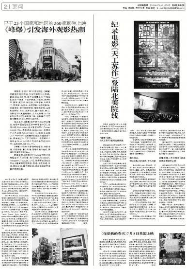本报讯 当地时间6月24日,非遗纪录电影《天工苏作》在北美地区AMC等主流院线正式公映,...