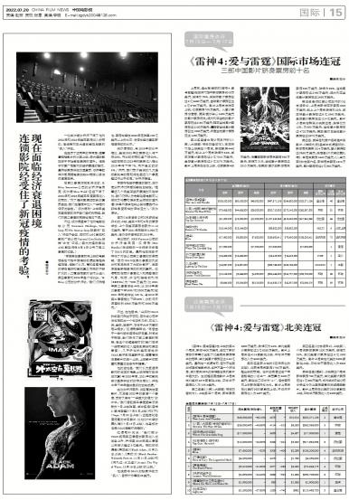 上周末,迪士尼/漫威的《雷神4:爱与雷霆》在国际市场中新增票房6010万美元,跌幅为59%,其国际累...