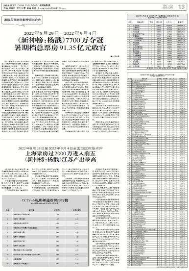 - 《新神榜:杨戬》7700万夺冠 暑期档总票房91.35亿元收官