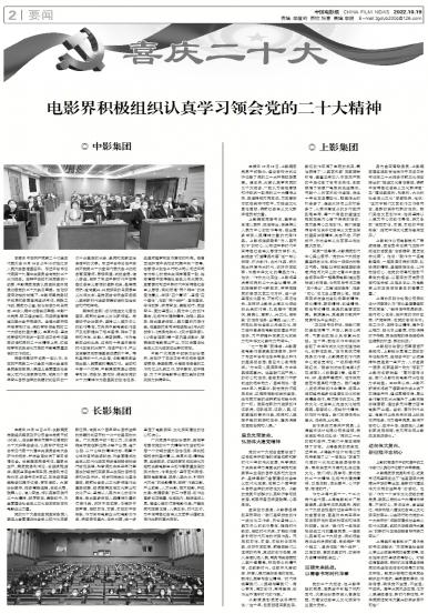 本报讯 10月16日上午,长影集团党委组织集团及子公司全体党员干部130余人,在长影音乐厅集中收看党...
