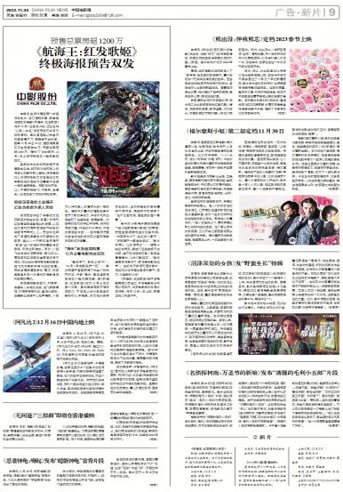 本报讯 由原作尾田荣一郎担任总制片,谷口悟朗执导,黑岩勉任编剧的电影《航海王:红发歌姬》将于12月1...